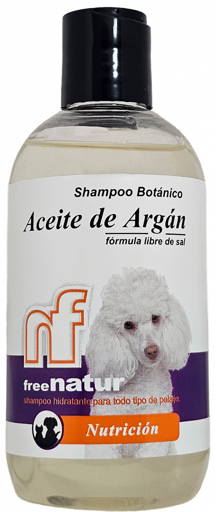 Exclusiva fórmula botánica libre de sal, desarrollada con aceite de argán. El uso frecuente garantiza brillo y suavidad en el pelaje.