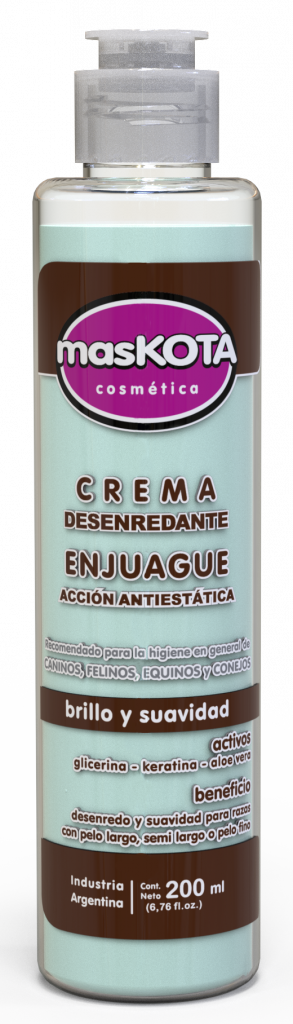 Fórmula antiestática diseñada para desenredar y recuperar la elasticidad del pelaje, aumentando su suavidad y brillo en todo tipo de pelaje.