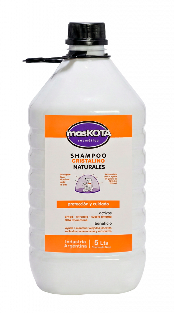 Exclusiva fórmula botánica libre de sal, enriquecida con camomila, aloe vera y vitaminas. Otorga brillo y textura al pelaje.